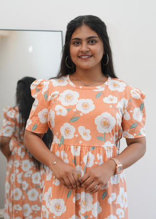 ORANGE WHITE FLORAL | NON-FEEDING MAXI – PUFF SLEEVES | ANKLE LENGTH MAXI
