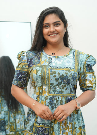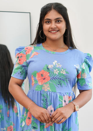 COLOURFUL FLOWERS | NON-FEEDING MAXI – PUFF SLEEVES | ANKLE LENGTH MAXI
