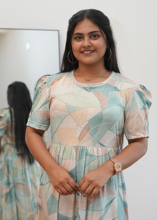 TINY ABSTRACT | NON-FEEDING MAXI – PUFF SLEEVES | ANKLE LENGTH MAXI