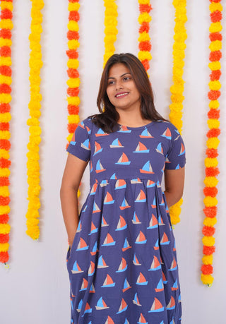 BLUE BOAT | NON-FEEDING MAXI – SHORT SLEEVES | ANKLE LENGTH MAXI