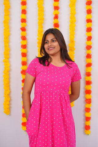 PINK TINY HEART| NON-FEEDING MAXI – SHORT SLEEVES | ANKLE LENGTH MAXI