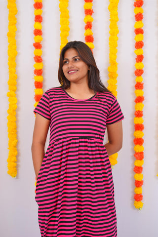 DARK PINK BLACK LINE | NON-FEEDING MAXI – SHORT SLEEVES | ANKLE LENGTH MAXI
