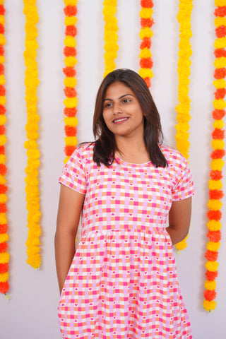 HEART CHECKED | NON-FEEDING MAXI –SHORT SLEEVES | ANKLE LENGTH MAXI