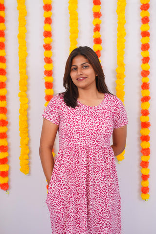 PINK CHEETAH | NON-FEEDING MAXI – PUFF SLEEVES | ANKLE LENGTH MAXI